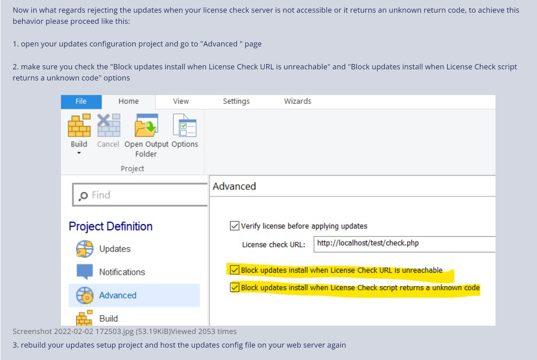 Running the command Updater.exe /silentall -nofreqcheck -nogui or double clicking on Updater.exe will not check the license and will go ahead and upgrade this. Is there a way to control this?